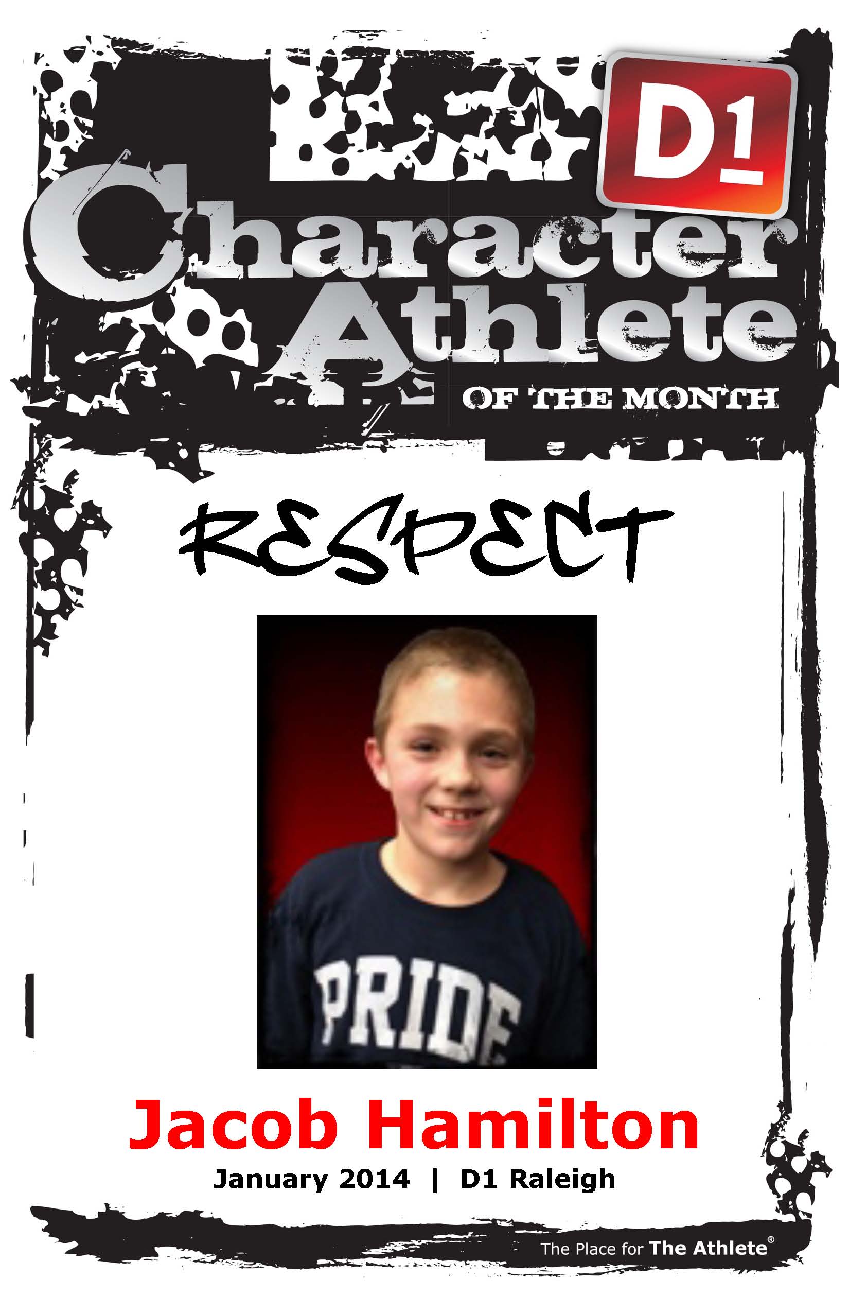 January 31, 2014 – D1 Raleigh’s Character Athlete of the Month for the month of January is Jacob Hamilton. Jacob has been with D1 Raleigh since it’s inception in the Fall 2012. He has progressed through the Rookie program to become one of our top athletes. Jacob also holds the facility record for most push-ups for his age group. He constantly stays after his workout to work on other skills to improve his game. Most importantly, Jacob displays to coaches and teammates alike, the true qualities of RESPECT. Again, congrats to Jacob and his dedication to his athletics!