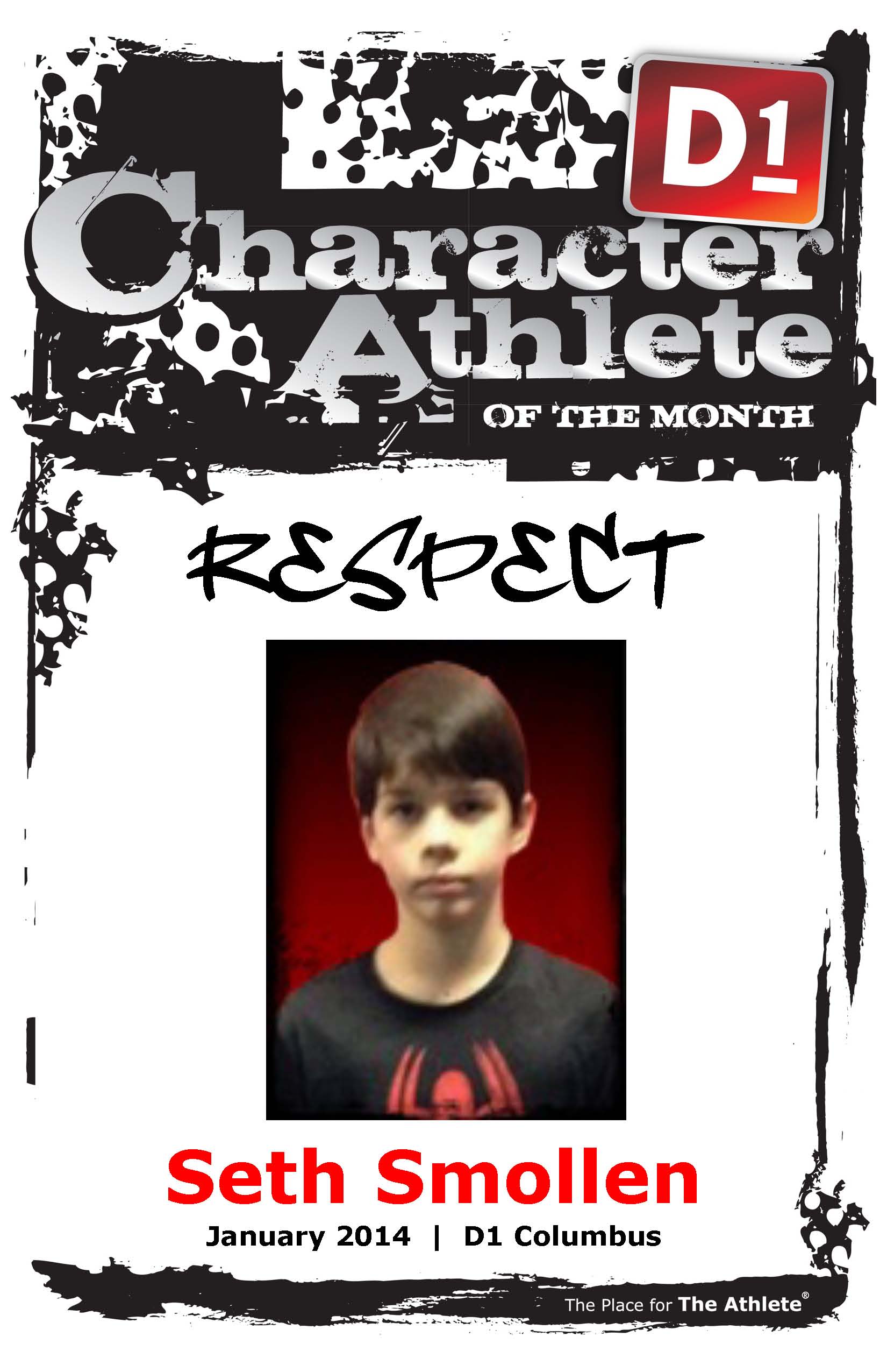 January 28, 2014 – D1 Columbus’s Character Athlete of the Month for the month of January is Seth Smollen. Seth has been a positive, high-spirited athlete. He is very attentive and follows all training directions that the coaches give and applies them with his best ability and utmost RESPECT. The RESPECT level that Seth gives the coaches and the fellow Rookie members is exceptional. He is always motivating his peers and bringing out the best in everyone training in his class.